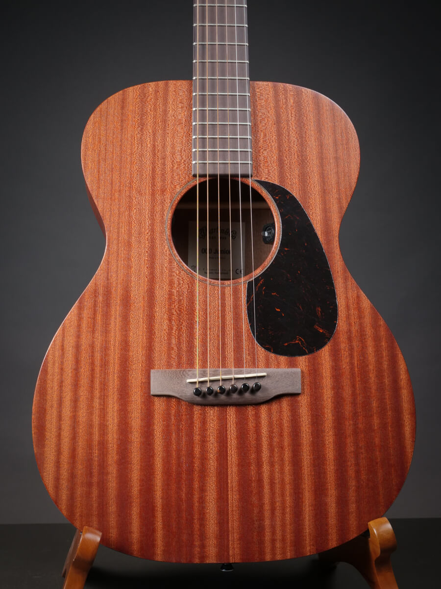 The Martin 000 Jr-E redefines expectations for a junior-model guitar, offering a mature sound and exceptional playability in a compact, travel-friendly package. Its all-sapele body delivers a balanced tone with a strong midrange and bright treble, while the hardwood neck with a Performing Artist profile ensures comfort and durability. Equipped with the Martin E-1 preamp, this guitar is versatile enough for any setting, from casual playing to professional performances.